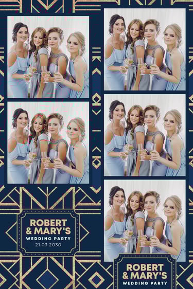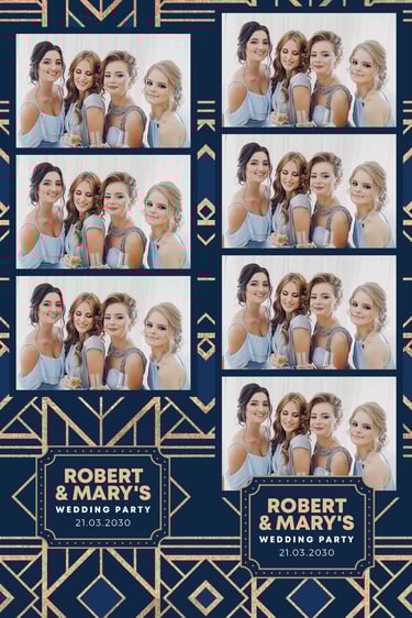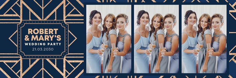 Perfect for nostalgic vibes, these classic strips are ideal for weddings, birthdays, and casual celebrations. Each strip fits three or four photos, beautifully arranged with your customized overlay.